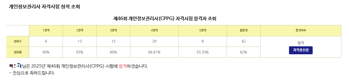 이 시험은 핵심 개념만 요약해서 키워드들을 잘 학습하는 것이 기본인 것 같다. 만약 고득점을 받고 싶다면 `개인정보보호법`을 매우 꼼꼼히 알아야 한다. (단기간엔 쉽지 않은 방법이다)
